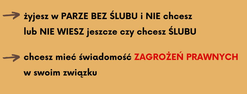 Pary bez ślubu są w świetle prawa osobami obcymi, a relacja ta NIE jest zabezpieczona przez prawo, co powoduje wiele zagrożeń w różnorodnych sferach życia.